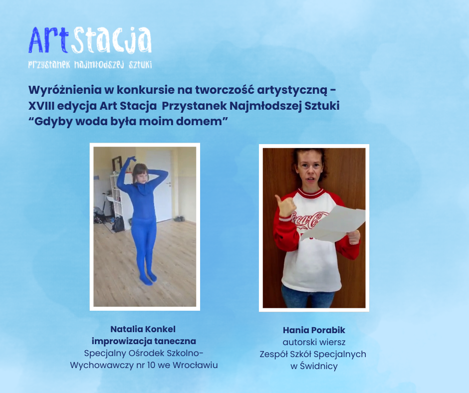 Z ogromną radością prezentujemy laureatów oraz osoby wyróżnione w XVIII edycji konkursu Art Stacja pt. „Gdyby woda była moim domem”. Tegoroczna edycja po raz kolejny pokazała, jaki niezwykły potencjał twórczy drzemie w najmłodszych artystach oraz jak wiele można opowiedzieć o świecie poprzez sztukę.